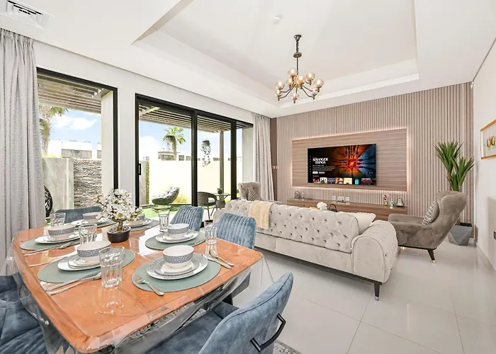 La Villa Damac Hills 2 Poolside Dubái está situada a 3 km de The Desert Ranch y permite a los huéspedes disfrutar de la posibilidad de practicar piragüismo, ciclismo y squash. Con una terraza, la villa está situada a unos 15 minutos en coche de la Granja de Camellos.